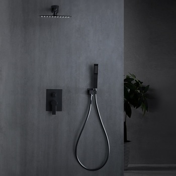 CUPC मैट काले छत माउंट पीतल शरीर बाथरूम झरना नल स्नान सेट के साथ हाथ में सिर बौछार